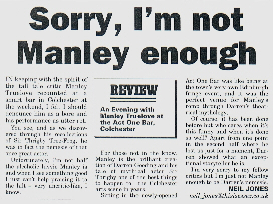 Essex County Standard 13.07.2001 Colchester &  North Essex Evening Gazette 10.09.2001 Manly Reviews